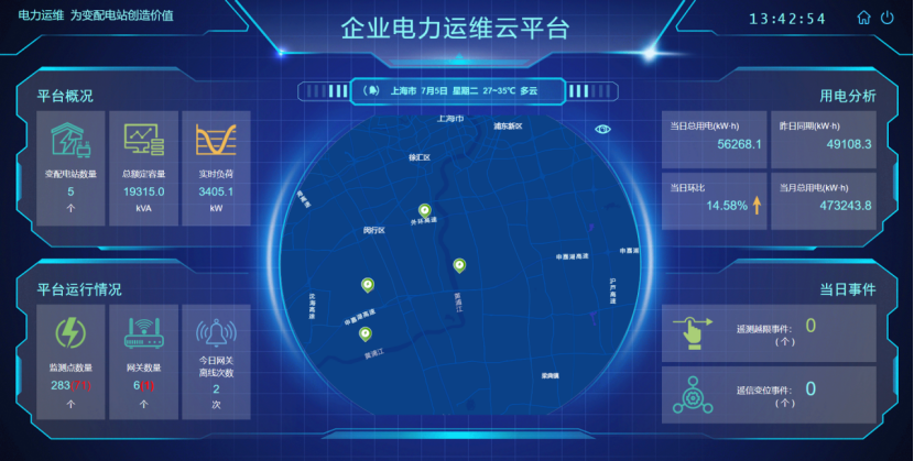 本项目多个变电所分批次改造,安科瑞提供的AcrelCloud -1000电力运维系统包括:AcrelCloud -1000软件、PZ96仪表163台、温湿度变送器13台、水浸传感5台、烟雾传感器6台、网络摄像机11台、门磁3台等。
