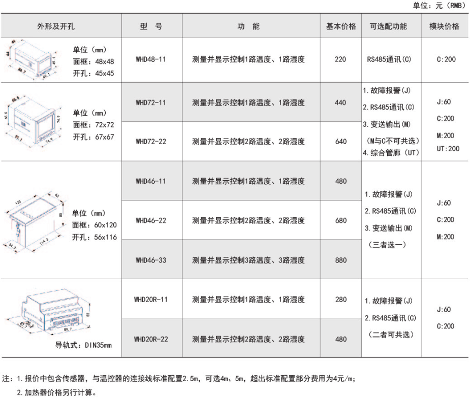 产品简介:WH系列温湿度控制器运用传感器检测柜内的温度与湿度值,并通过控制外接的风扇与加热器对温度与湿度值进行调节,可有效防止因低温、高温造成的设备故障以及受潮或结露引起的爬电、闪络事故的发生。